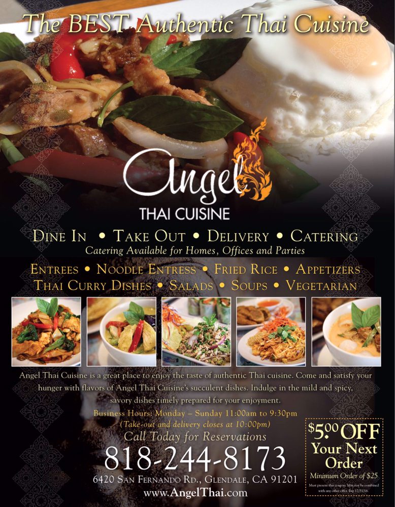 Are you looking for authentic Thai cuisine in Glendale, CA? Look no further than Angel Thai Cuisine. This restaurant offers a wide range of options, including Pescatarian and Vegan choices. With a menu filled with crowd favorites such as pad thai, pad see ewe, and mango sticky rice, every dish is bursting with flavor. Customers rave about the friendly staff and welcoming atmosphere, making it the perfect spot for a casual lunch or dinner. The restaurant is Asian-owned and women-owned, adding to its charm and authenticity. Whether you're in the mood for a spicy curry or a comforting bowl of noodles, Angel Thai Cuisine delivers top-notch quality at reasonable prices. Don't forget to try their signature dishes like the Crying Tiger and Pad See Ew with fried tofu for a delightful experience. With exceptional service and delicious food, Angel Thai Cuisine is a must-try for Thai food enthusiasts.